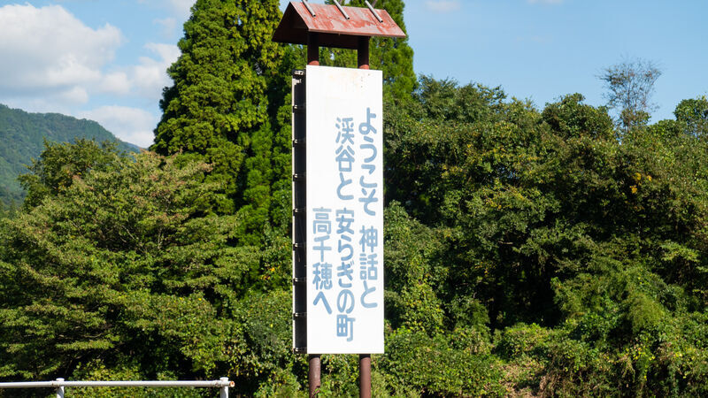 熊本との県境のループ橋を越えて700mほど進んだ位置にある看板。