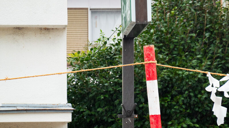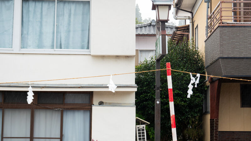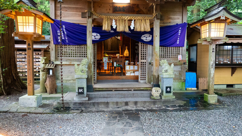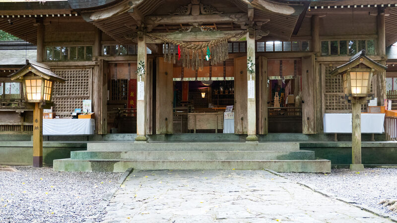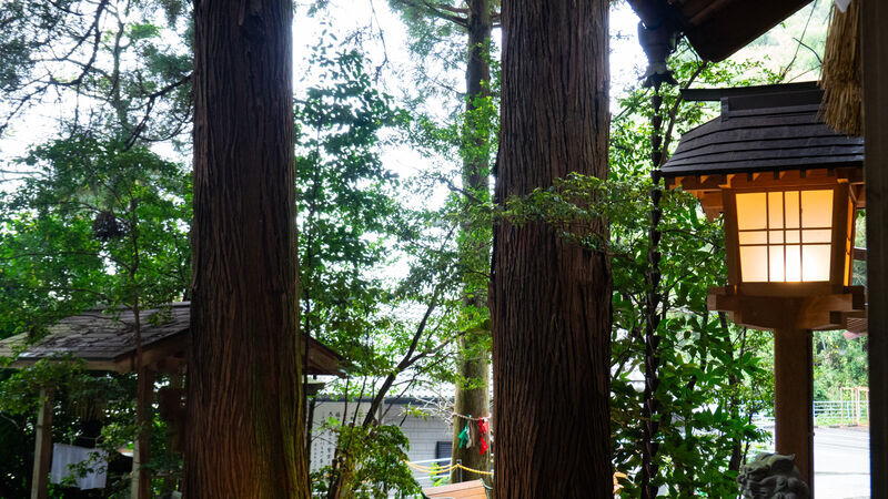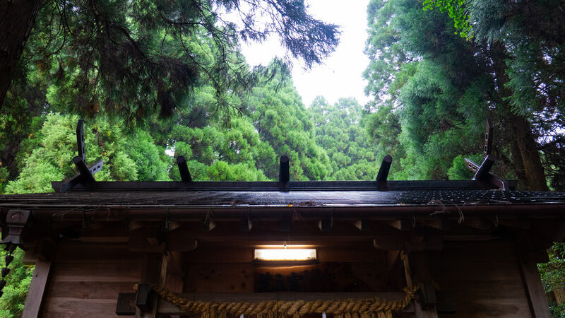 この日は槵觸神社の例大祭が行われており、紙垂が付けられた縄が各所に張り巡らされていました。