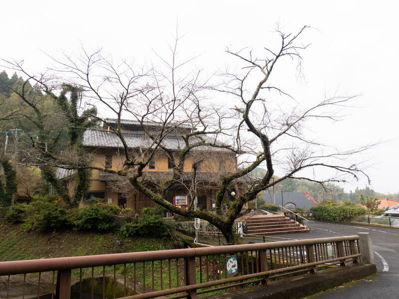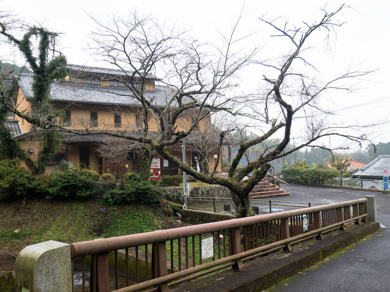 「旧波佐見町立中央小学校講堂兼公会堂」という建物の前の道。