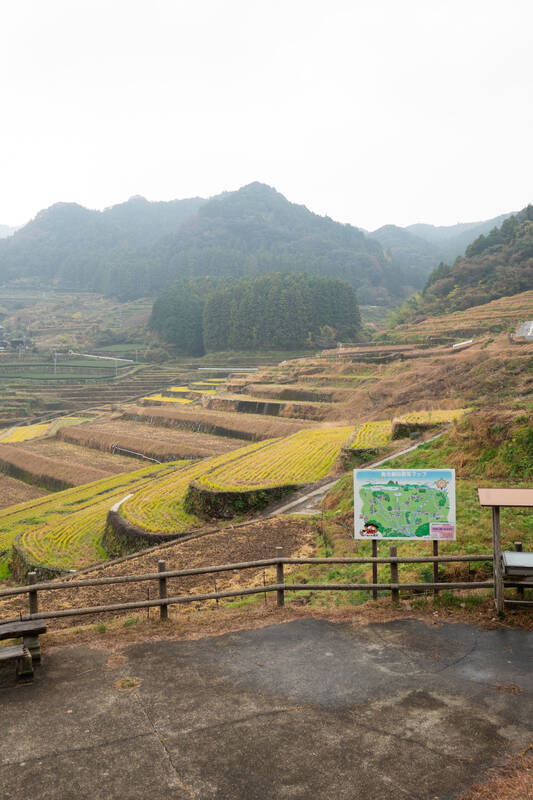 グーグルマップでは棚田の南側に「鬼木の棚田 山の上展望所」とありますが、そちらではなく西側の「鬼木棚田の石碑」と書かれているポイントです。(私も最初間違えました…)