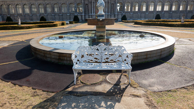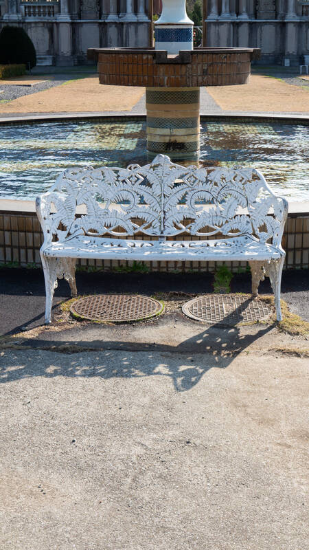 中庭の噴水とベンチ